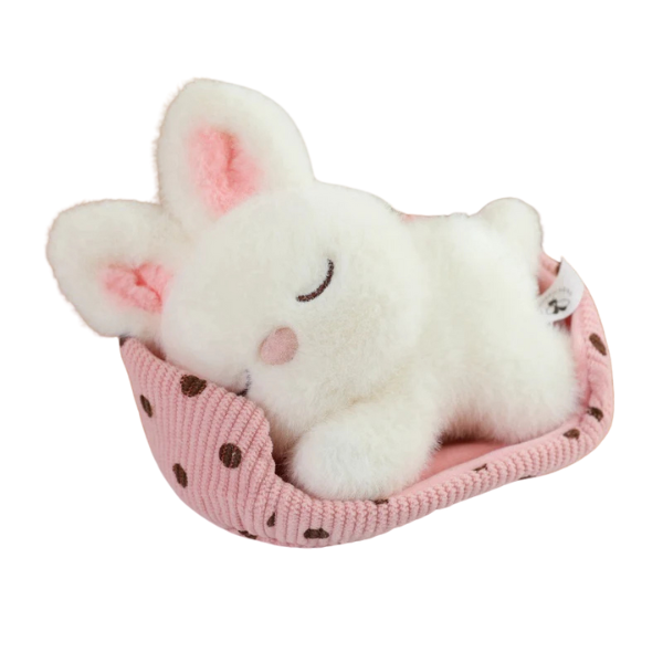 Offrez à votre enfant Rosie, un adorable bébé lapin en peluche qui semble s’être endormi paisiblement. Avec son pelage blanc soyeux, ses oreilles roses et sa position de sommeil, elle est parfaite pour les câlins et pour apporter un sentiment de calme et de tendresse.